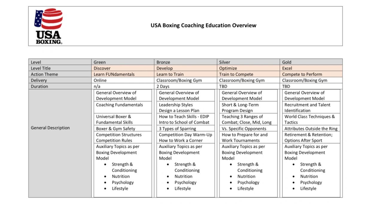 *Individuals who become bronze certified will need to complete the bronze recertification course every two years to maintain a bronze level certification. The bronze recertification is an online course located on usaboxingeducation.org and costs $50.
